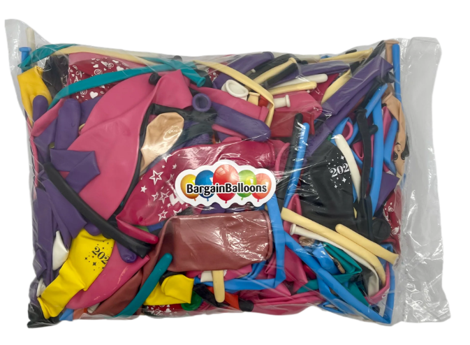 Bargain Balloons’ prank assortment packages weigh approximately 2 LBS. and are made up of various sizes, colors, shades, and types of latex balloons– from 5-inch to 36-inch, twisting balloons, and shaped latex balloons (assortment packs do not contain Cloudbuster balloons).